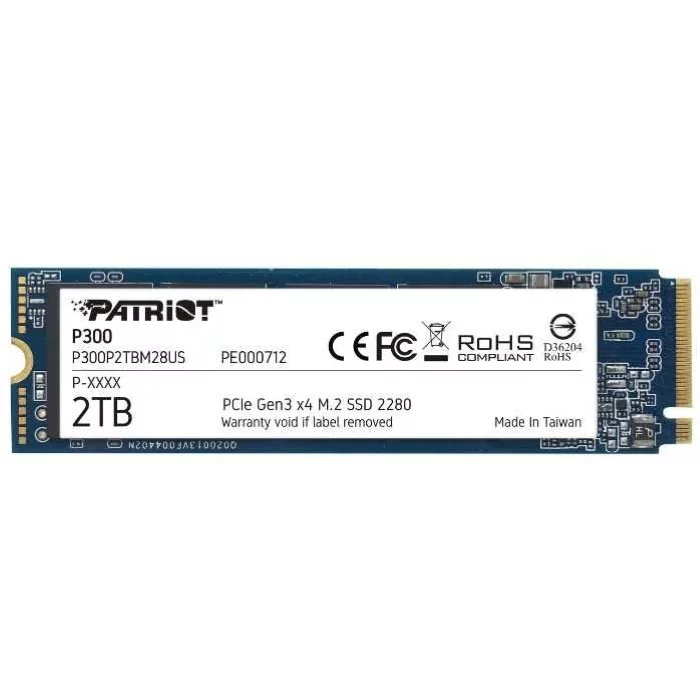 Твердотельный накопитель 2TB SSD Patriot P300, M.2 2280, PCI-E x4, 3D NAND (P300P2TBM28)