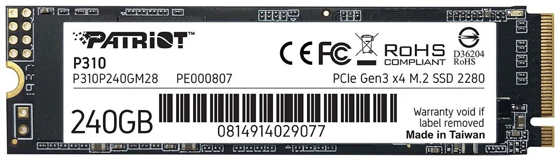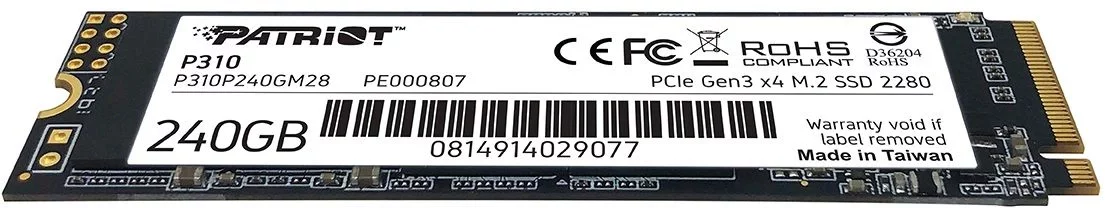 Накопитель SSD Patriot PCIe 3.0 x4 240GB P310P240GM28 P310 M.2 2280