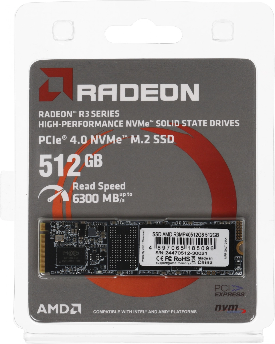 Накопитель SSD AMD PCIe 4.0 x4 512GB R3MP40512G8 Radeon M.2 2280