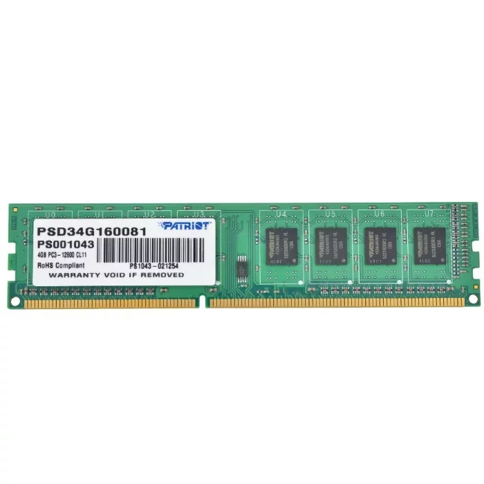 Модуль памяти Patriot PSD34G160081, DDR3 DIMM 4GB 1600MHz, PC3 -12800 Mb/ s, CL11, 1.5V, RTL (PSD34G160081)