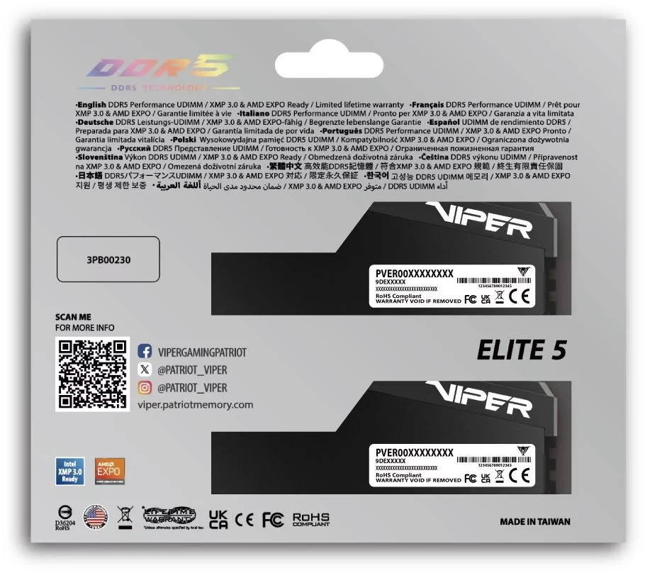 Память DDR5 2x16GB 6000MHz Patriot VEU532G6028K Viper Elite 5 Ultra RTL Gaming PC5-48000 CL28 DIMM 288-pin 1.4В kit single rank с радиатором Ret