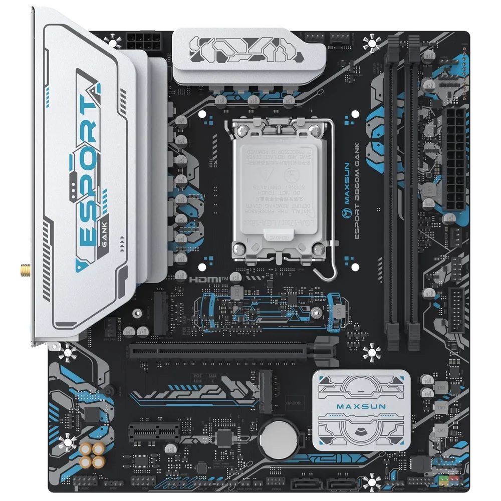 Материнская плата Maxsun MS-eSport B860M GANK WIFI B860, LGA1851, 2*DDR5, 1*PCIEx16, 1*PCIEx1, 2*M.2, 6*USB3.2Gen1, 4*USB2.0, 2*SATA3.0, 1G, DP, HDMI, M-ATX, RTL (6940709661413)
