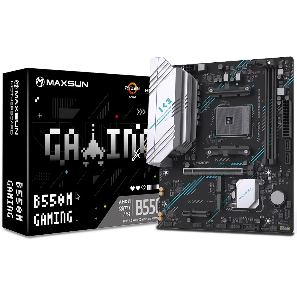 Материнская плата Maxsun MS-B550M GAMING WIFI B550, AM4, 2*DDR4, 1*PCIEx16, 1*PCIEx4, 1*PCIEx1, 2*M.2, 4*USB3.2Gen1, 6*USB2.0, 2*SATA3.0, 1G, DP, HDMI, M-ATX, RTL (6940709661901)