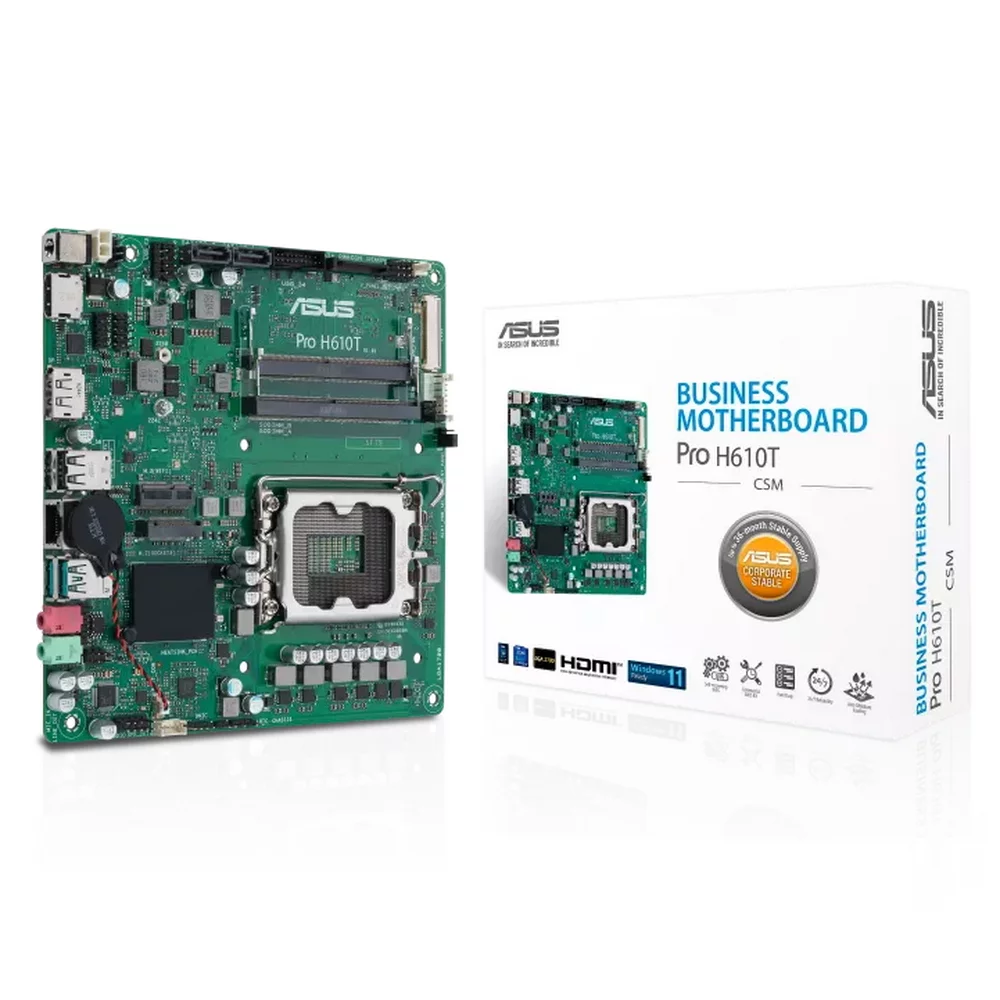 ASUS PRO H610T-CSM, LGA1700, H610, 2*DDR5, DP+HDMI, 2 SATA 6.0, M.2, USB 3.2, USB 2.0, mITX; 90MB1G60-M0EAYC (90MB1G60-M0EAYC)