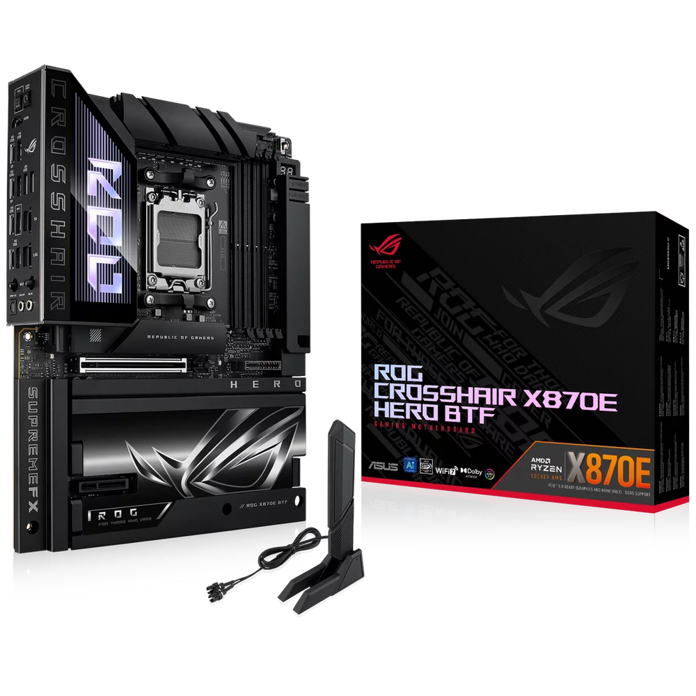 Материнская плата ASUS ROG CROSSHAIR X870E HERO BTF AM5 ATX 4xDDR5 PCIEx16 PCIEx4 5xM.2 4xUSB-C HDMI 5GLAN 2.5GLAN Wi-Fi 7 (90MB1MX0-M0EAY0)