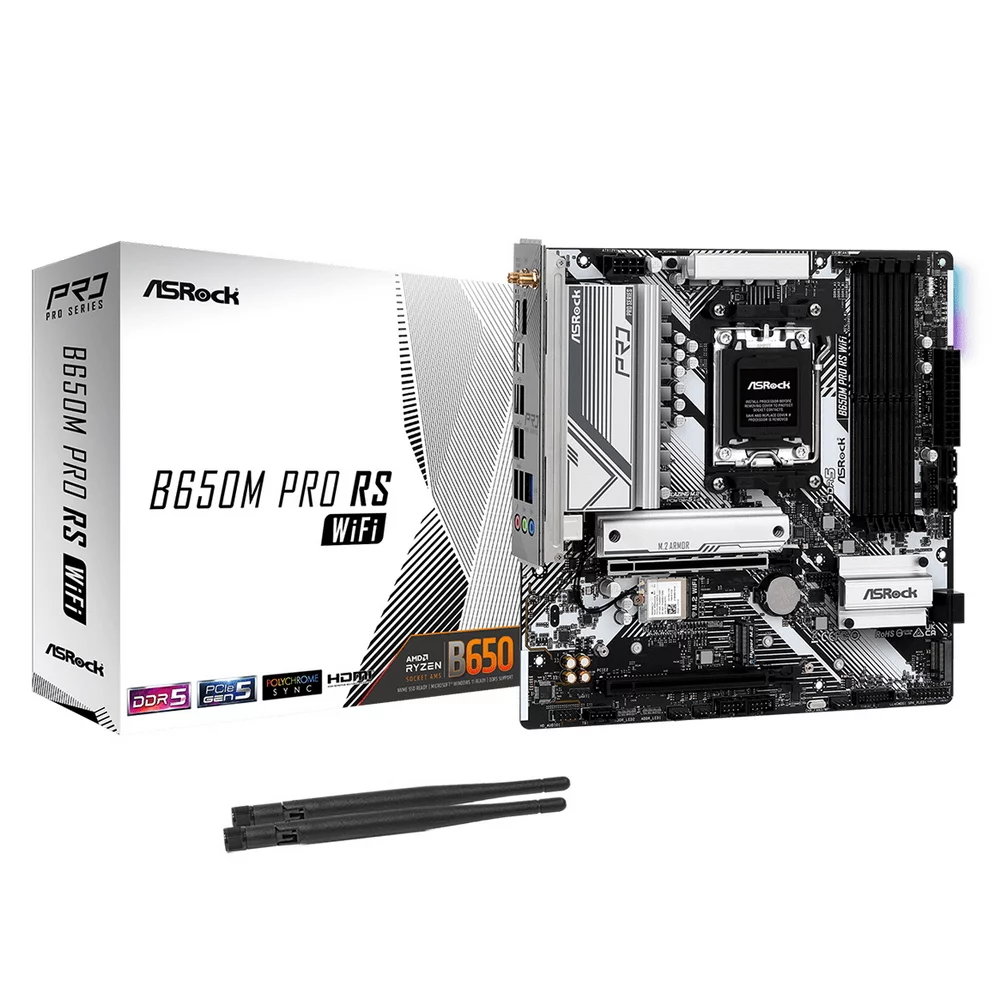 B650M PRO RS WIFI, Socket AM5, AMD B650, 4xDDR5-5200, HDMI+DP, 2xPCI-Ex16, 4xSATA3(RAID 0/ 1/ 10), 3xM.2, 8 Ch Audio, 1x2.5GLan, WiFi, (4+4)xUSB2.0, (3+4)xUSB3.2, (1+1)xUSB3.2 Type-C™, mATX, RTL, {}
