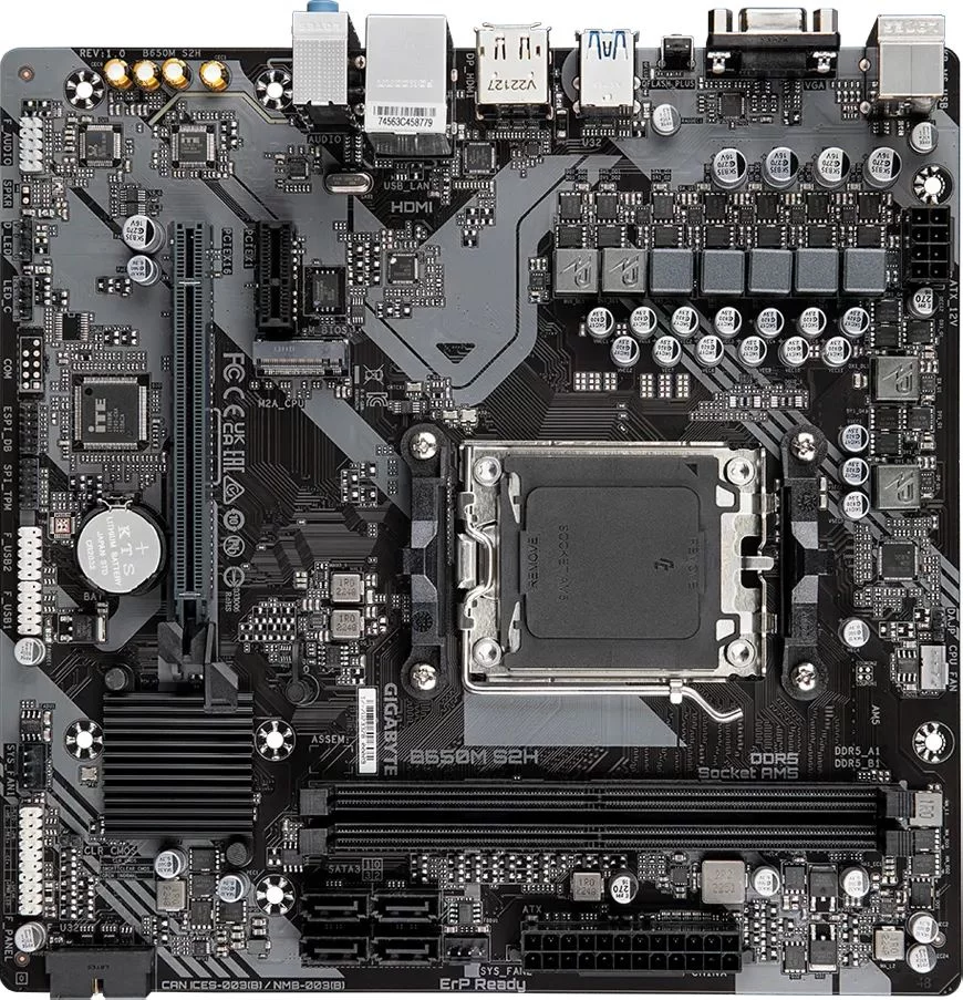 Материнская плата/ MB GIGABYTE AMD B650 sAM5, 2xDDR5(96GB), D-SUB/HDMI 2.1/DP, 1xPCIe 4.0x16, 1xPCIe 3.0, 1xLAN, 4xSATA 6Gb/s, 1xM.2, 2xUSB 3.2, 4xUSB 2.0, 1xPS/2, mATX (B650M S2H)