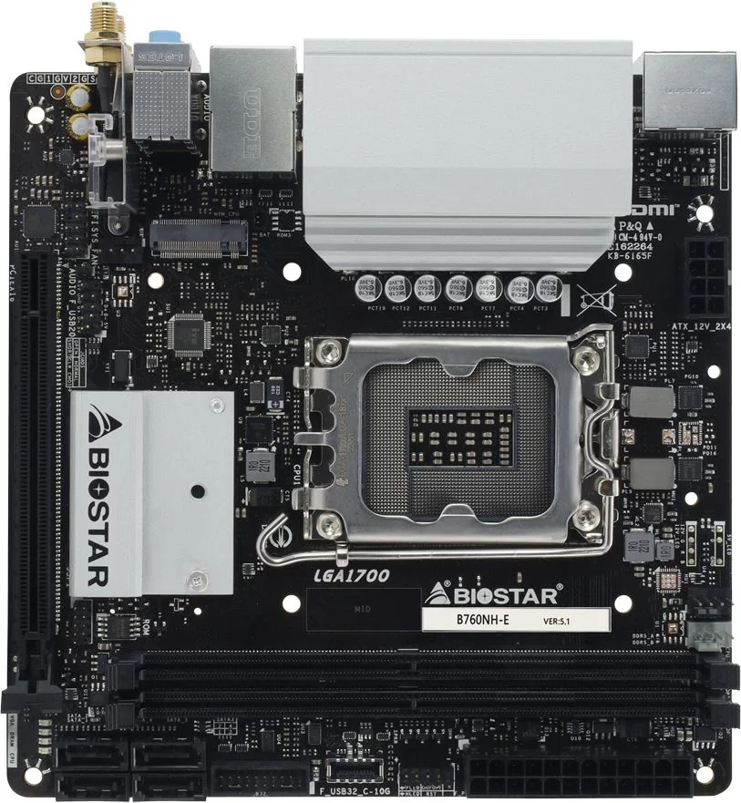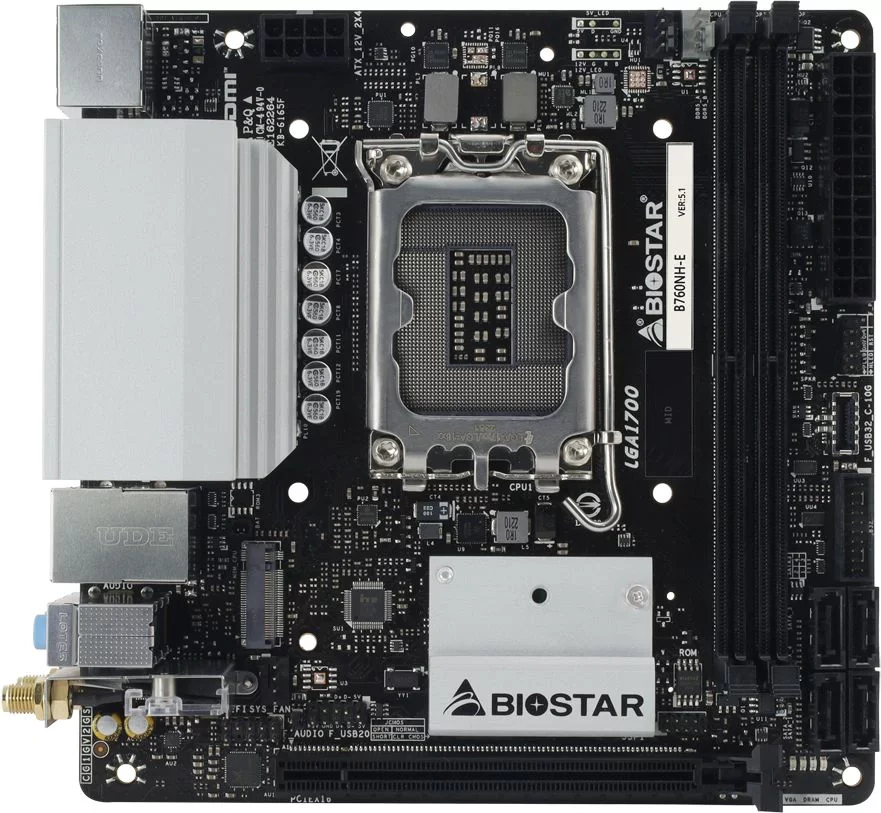 Материнская плата Biostar B760NH-E Soc-1700 Intel B760 2xDDR5 mini-ITX AC`97 8ch(7.1) 2.5Gg RAID+HDMI+DP