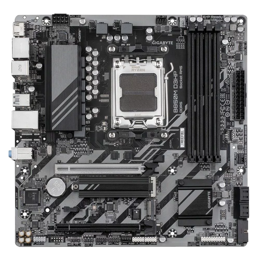 Материнская плата Gigabyte OEM B850M D3HP, Socket AM5, AMD B850, 4xDDR5-5200, HDMI+DP+DP, 2xPCI-Ex16, 4xSATA3(RAID 0/ 1/ 10), 2xM.2, 8 Ch Audio, 1x2,5GLan, (2+4)xUSB2.0, (3+2)xUSB3.2, (1+1)xUSB Type-C™, 1xPS/ 2, mATX, RTL (B850M D3HP||OEM)