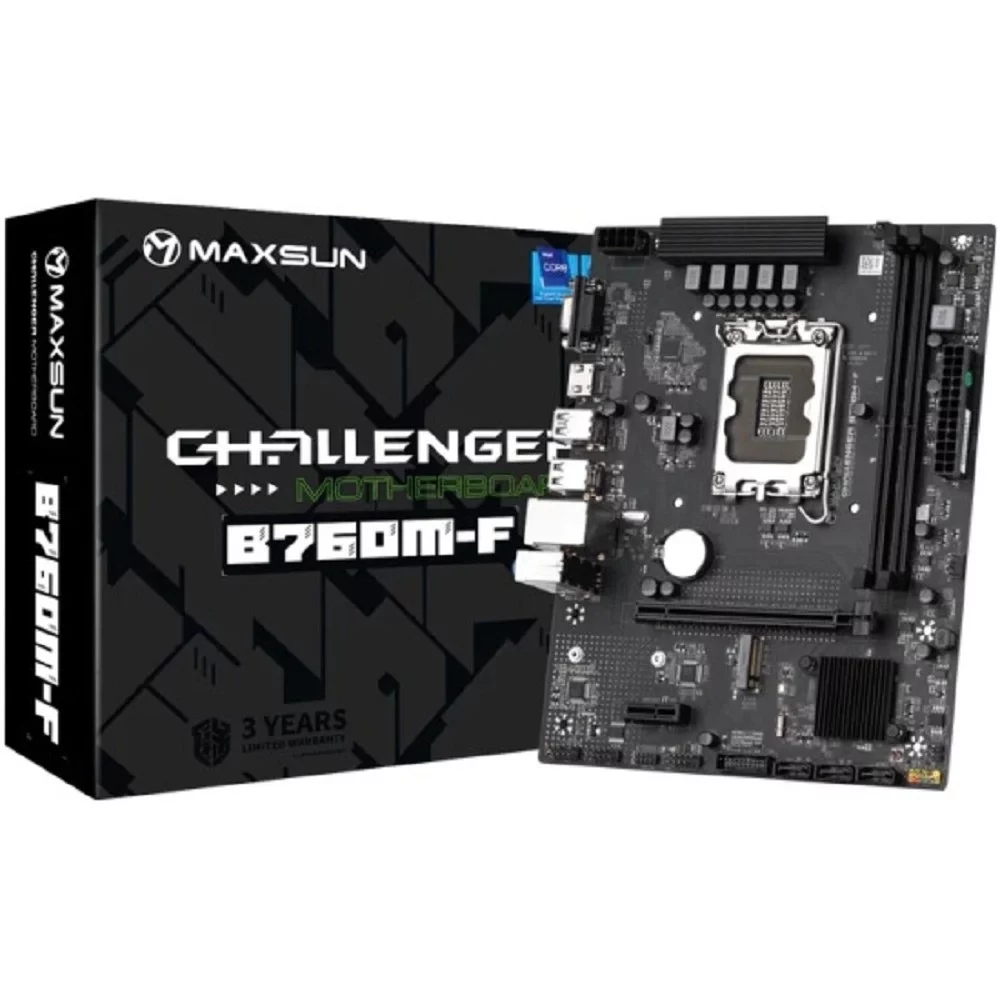 MAXSUN MS-Challenger B760M-F, LGA1700, B760, 2*DDR4, 3*SATA3, M.2, 2*USB 3.2, 4*USB 2.0, 1*PCIEx16, 1*PCIEx1, VGA+HDMI, mATX
