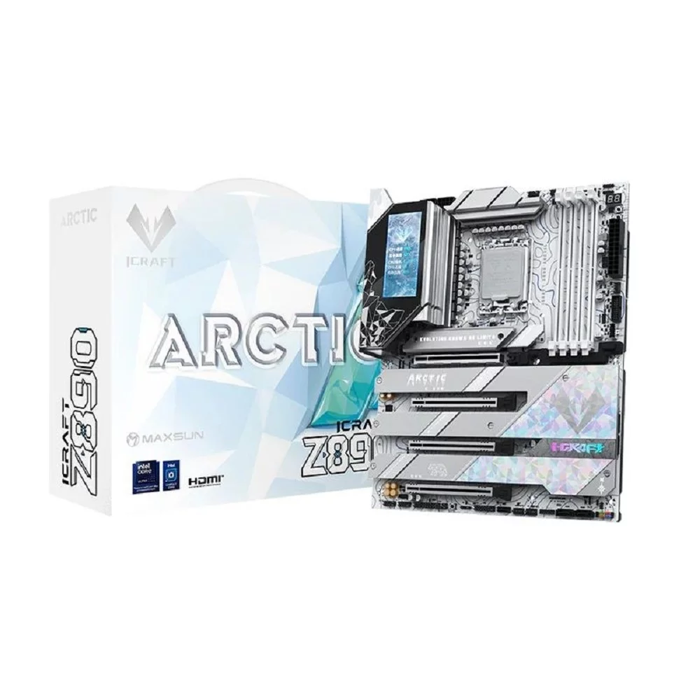 Материнская плата MAXSUN MS-iCraft Z890 ARCTIC, LGA1851, Z890, 4*DDR5, 4*SATA3, 4*M.2, USB 3.2, USB 2.0, Type-C, 4*PCIEx16, HDMI+DP, ATX