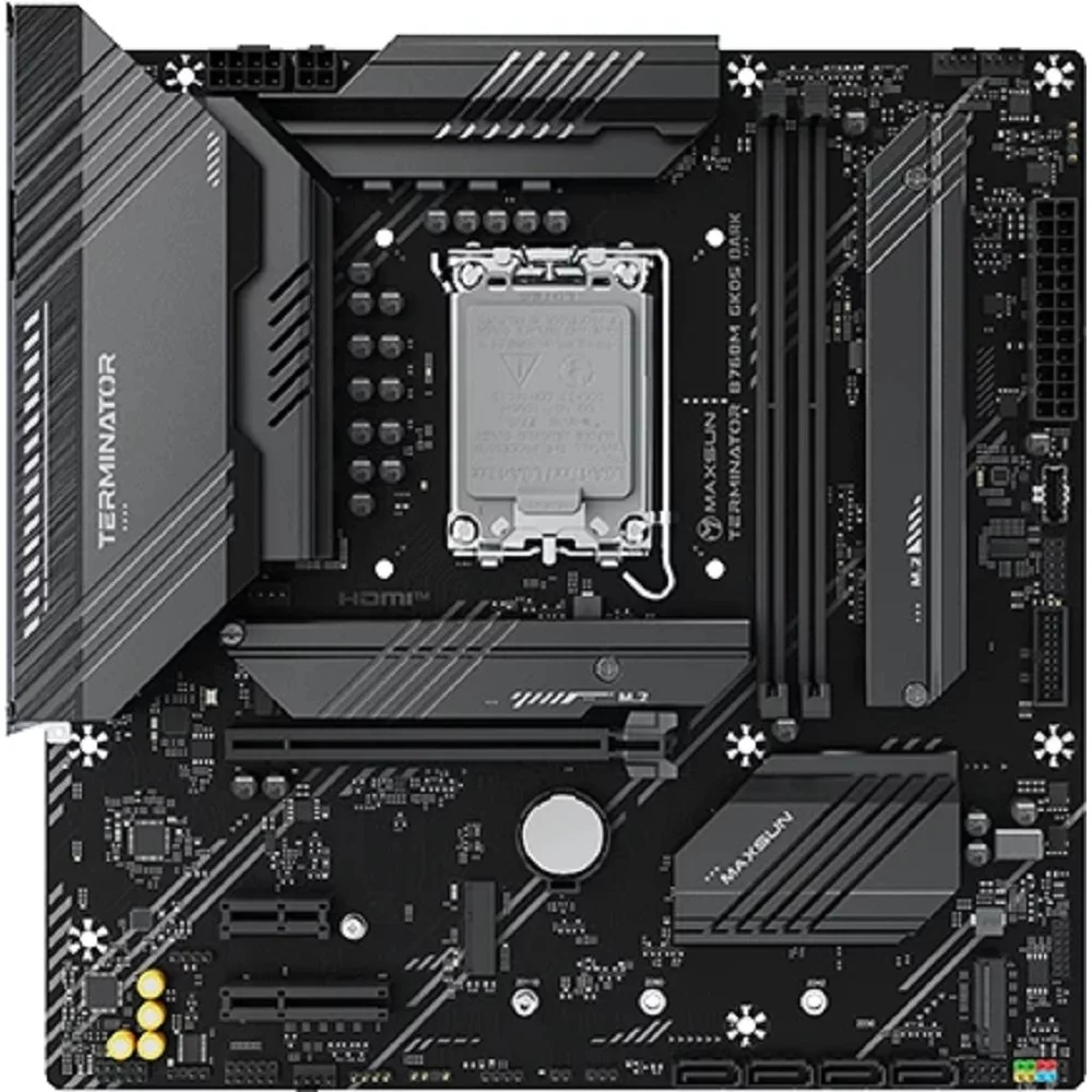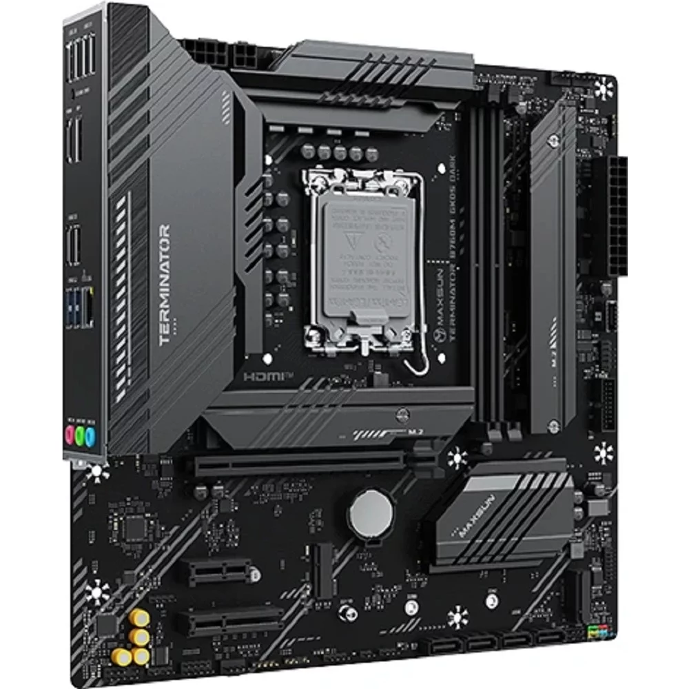 MAXSUN MS-Terminator B760M GKD5 DARK (Socket 1700, mATX, 2*DDR5, DP/HDMI, 4*SATA3, 3*M.2, 1*PCIEx16/1*PCIEx4/1*PCIEx1, LAN 1*2.5G , 6*USB2.0, 2*USB 3.2, 2*ARGB+1*RGB, black, RTL)