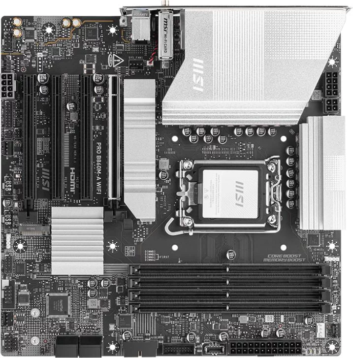 Материнская плата MSI PRO B860M-A WIFI Soc-1851 Intel B860 4xDDR5 mATX AC`97 8ch(7.1) 5Gigabit RAID+HDMI+DP