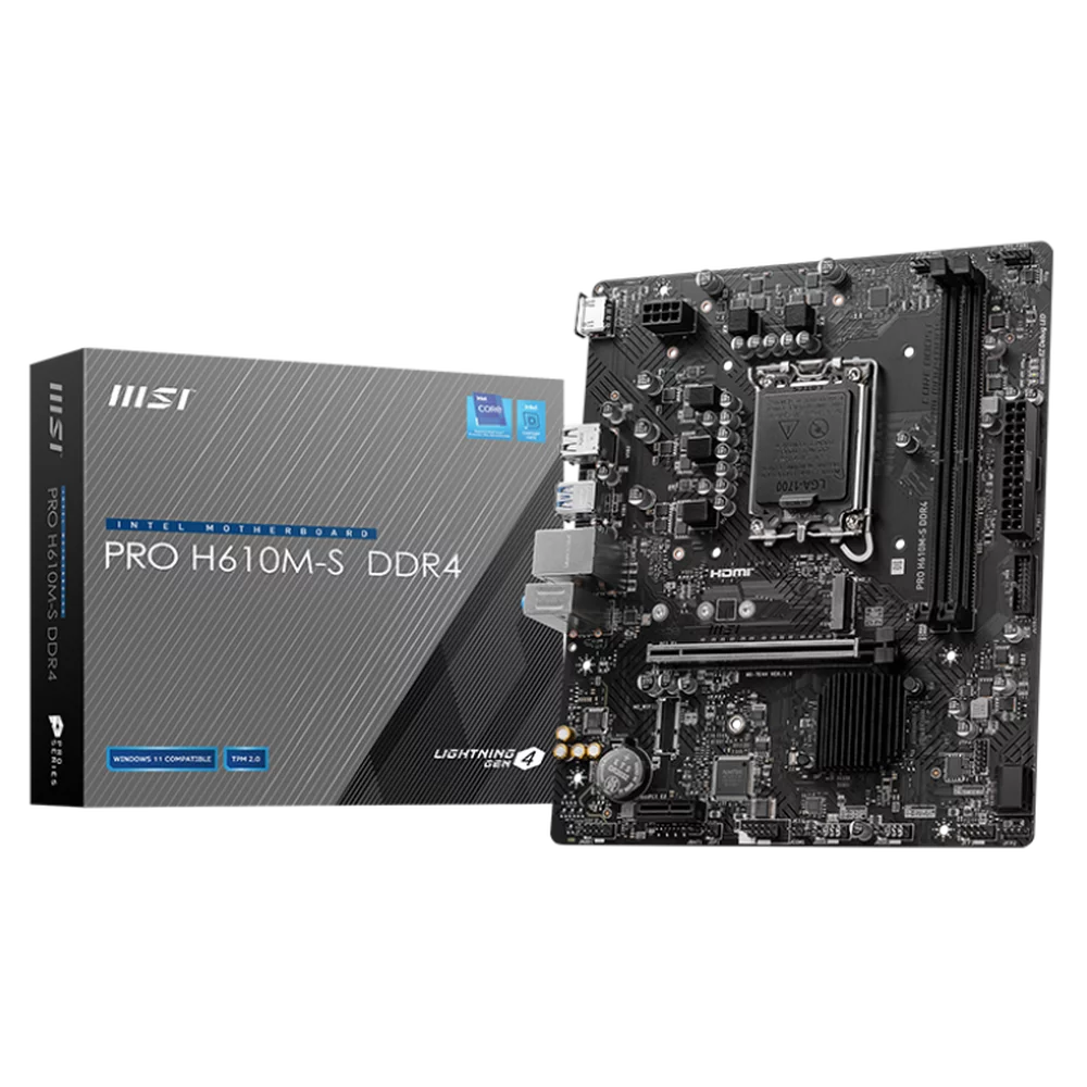 Материнская плата MSI PRO H610M-S DDR4 H610, LGA1700, 2*DDR4, 1*PCIEx16, 1*PCIEx1, 1*M.2, 2*USB3.2Gen1, 4*USB2.0, 2*SATA3.0, 1G, HDMI, M-ATX, RTL