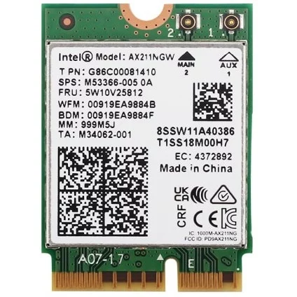 Плата сетевого контроллера/ Intel Wi-Fi 6E AX211 (Gig+), 2230, 2x2 AX R2 (6GHz)+BT, No vPro, 999M5J (AX211.NGWG.NV)