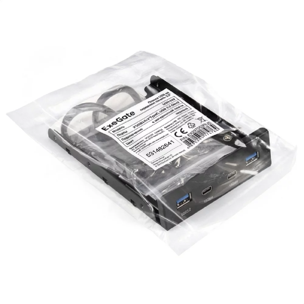 Exegate EX297553RUS Планка USB на переднюю панель ExeGate U3H-622, 3,5", 2*TypeA +2*TypeC (USB 3.2 Gen2 (SuperSpeed USB 10Gbps), черная, металл, подсоединение к мат. плате)