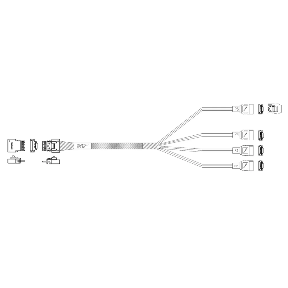 Кабель Amphenol RSL38-1277 Cable Slimline SASx4 (SFF8654) -to- 4 SATA (7pin) , 100 Ohm, (6G), 100CM