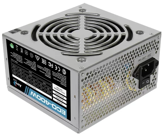 Блок питания Aerocool 400W Retail ECO-400W ATX v2.3 Haswell, fan 12cm, 400-mm cable, power cord, 20+4P, 12V 4P, 1x PCI-E 6P, 2x SATA, 2x PATA, 1x FDD