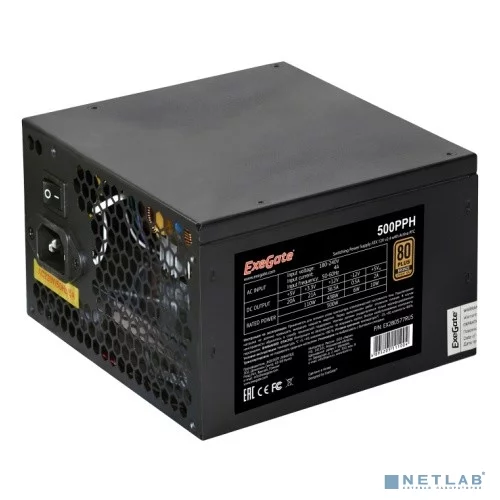 Exegate EX280577RUS-OEM Блок питания 500W Exegate 500PPH-OEM, 80+Bronze, ATX, black, APFC, 12cm, 24p, (4+4)p, 5*SATA, 3*IDE