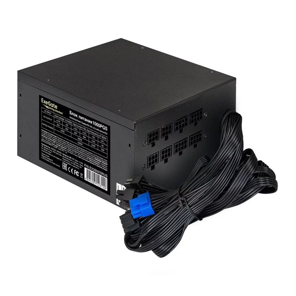 Блок питания 1000W ExeGate Gaming Standard 1000PGS (ATX, APFC, КПД 82% (80 PLUS), 14cm fan, 24pin, 2x(4+4)pin, PCIe, 5xSATA, 4xIDE, Cable Management, black, RTL) (EX285976RUS)
