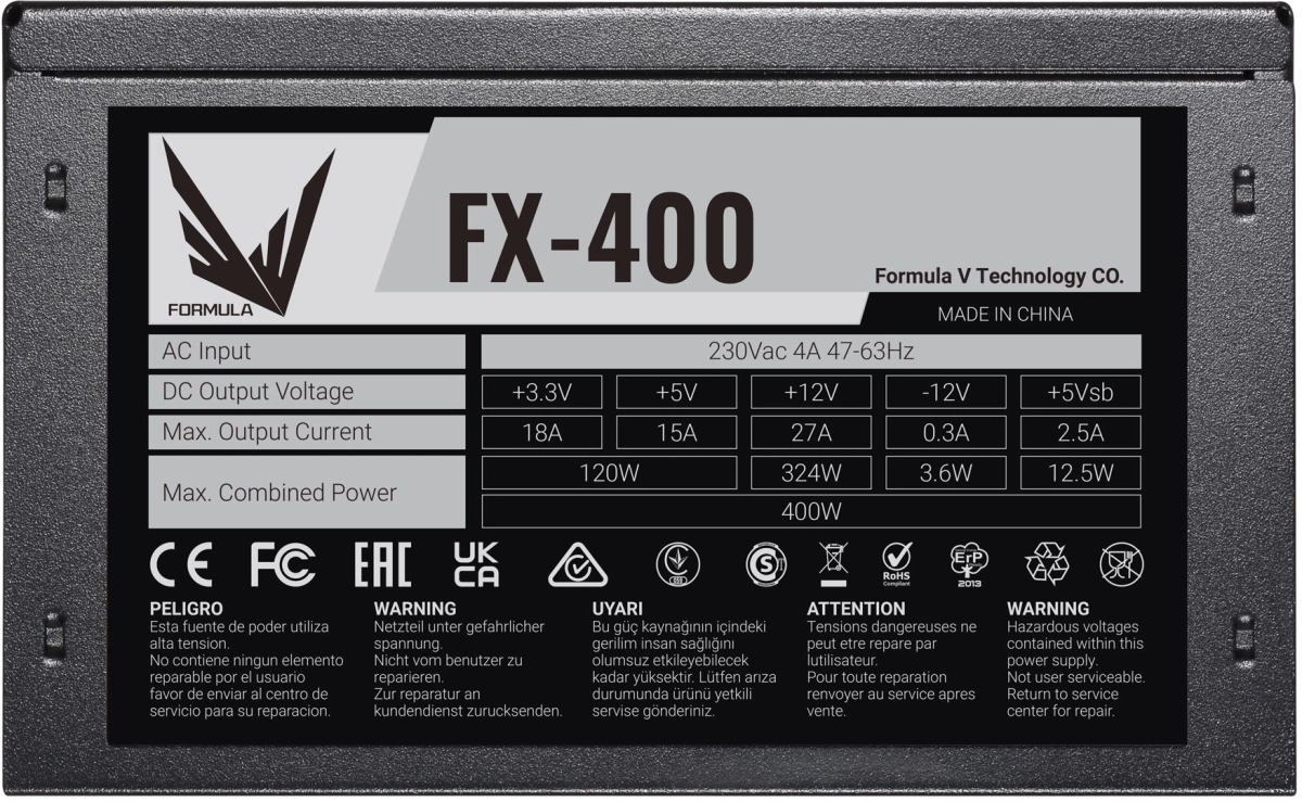 Блок питания Formula ATX 400W FX-400 (20+4pin) 120mm fan 3xSATA RTL