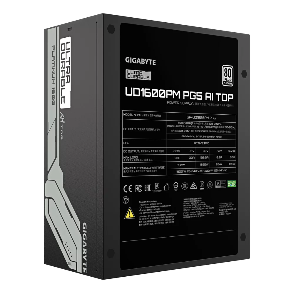 Блок питания Компьютер Gigabyte UD1600PM PG5 AI TOP 1600W, 80Plus, Platinum, Полностью модульный, PCIe Gen 5.0, ATX 3.1 compatible (GP-UD1600PM PG5)