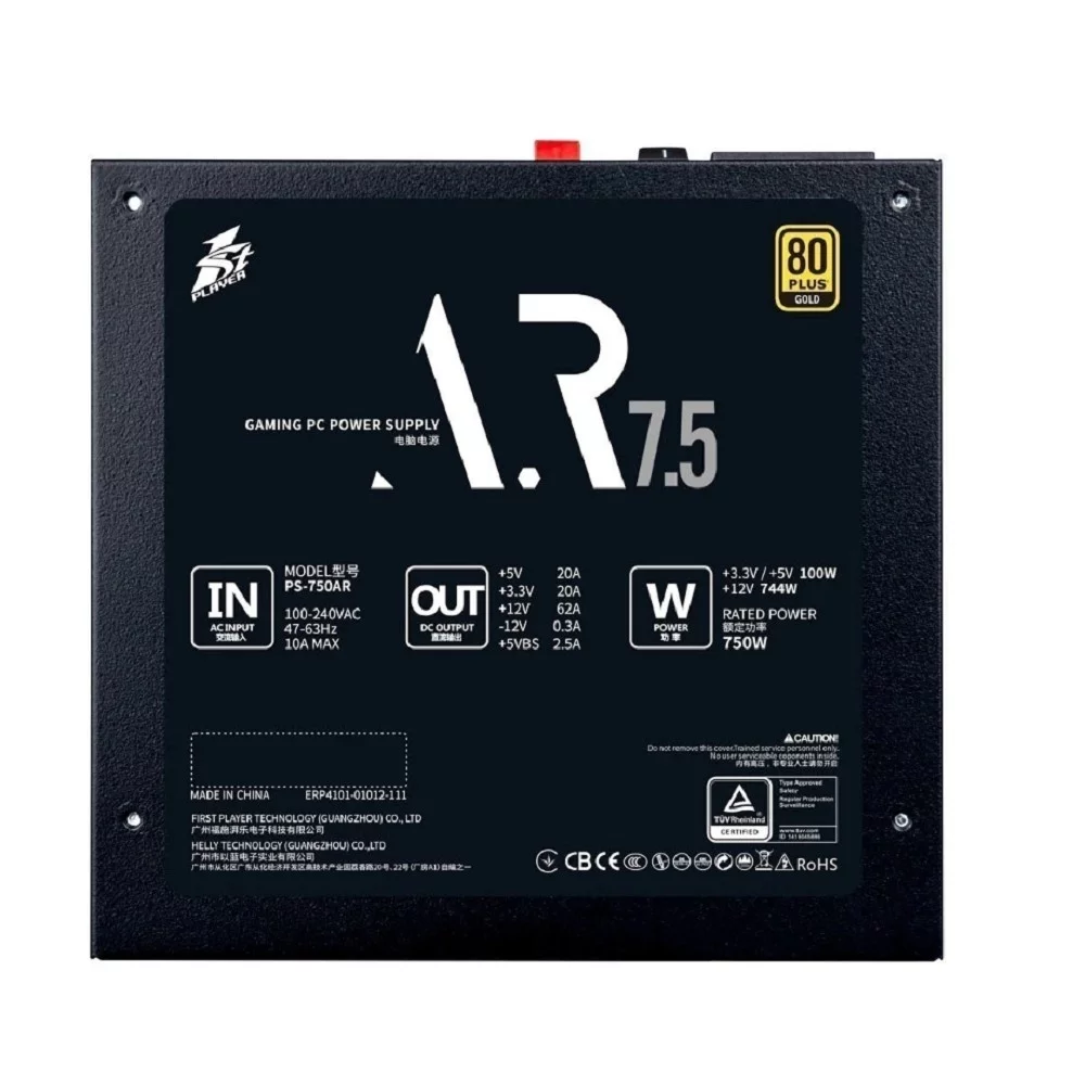 1STPLAYER Блок питания AR 750W / ATX 2.4, LLC+DC-DC, APFC, 80 PLUS GOLD, 120mm fan / PS-750AR