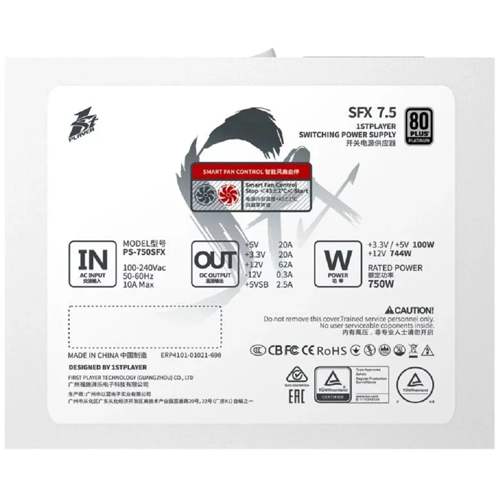 1STPLAYER SFX 750W PLATINUM White / SFX, APFC, 80 PLUS Platinum, LLC+DC-DC, 80mm fan, full modular / PS-750SFX-WH