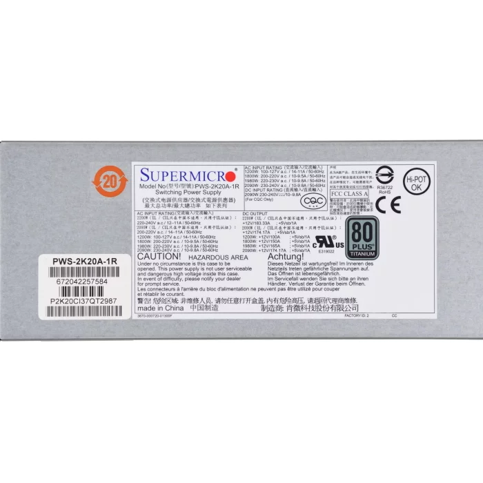 Блок питания Supermicro 2200W 80+ (PWS-2K20A-1R)