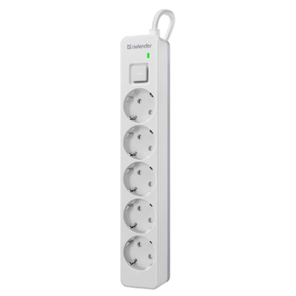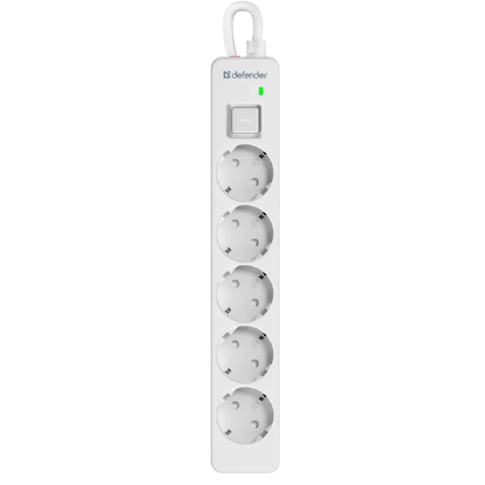 Defender Удлинитель с сетевым фильтром DFS 133, белый, 5 розеток, 3 м. (99431)