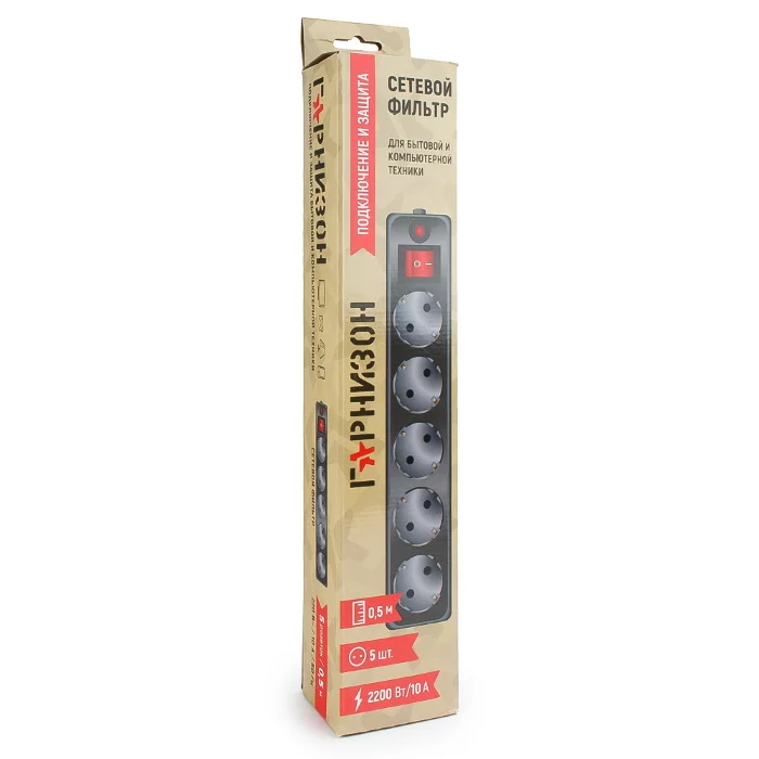 Сетевой фильтр Гарнизон ЕНLB-4 0,5 м 5 розеток 2,2 кВт 10A черный (EHLB-4)