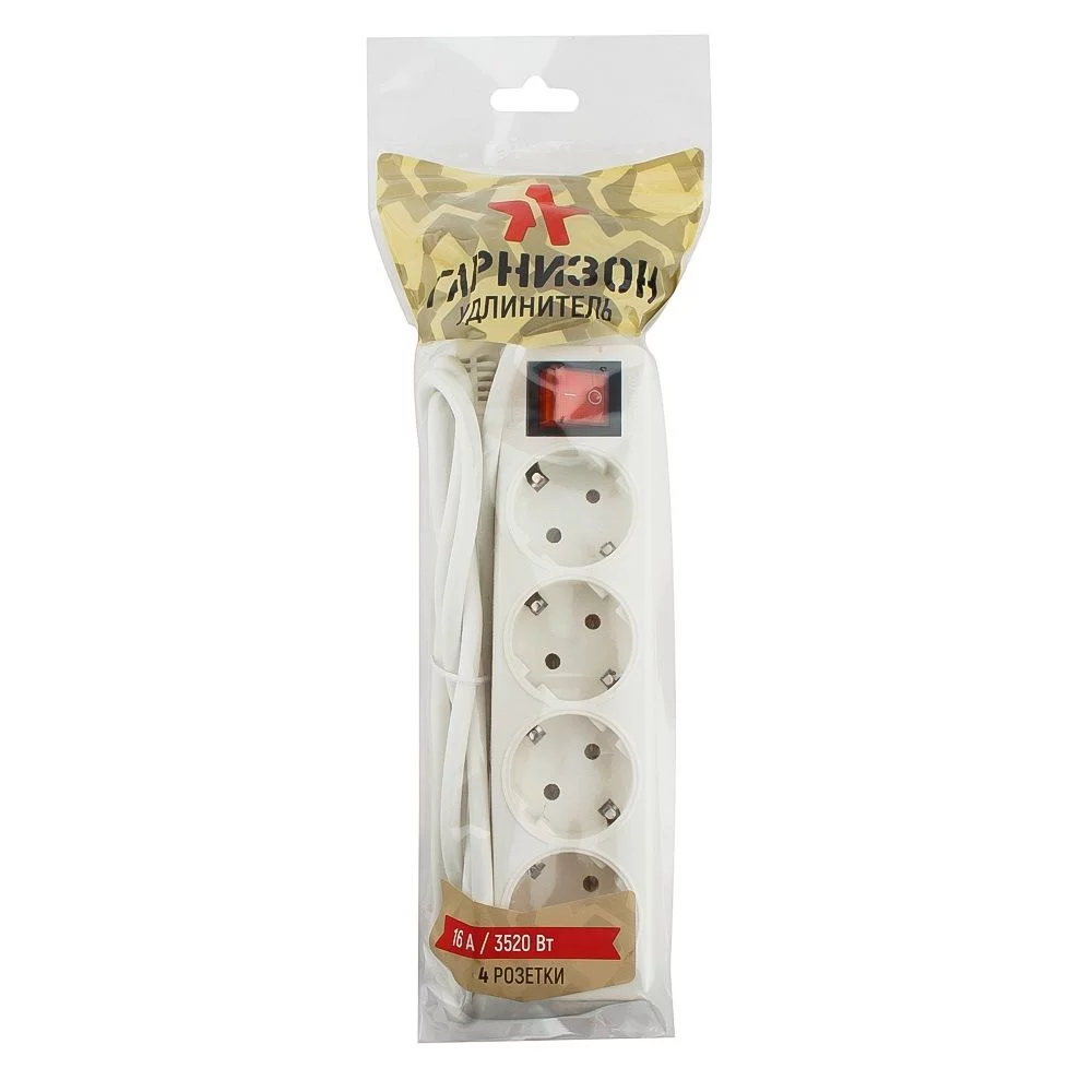 Гарнизон Сетевой фильтр ELB-G4-W-5, 4 евророзетки с выключателем и заземлением, допустимый ток 16А, длина 5м.