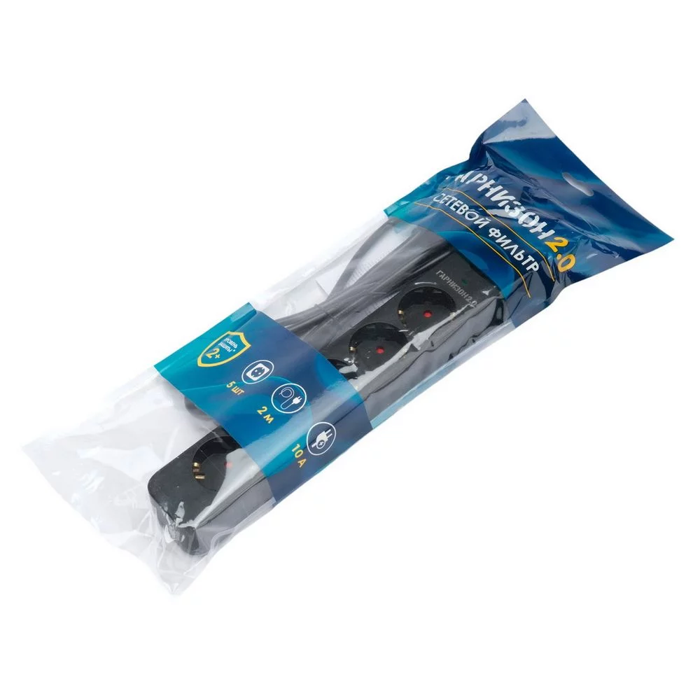 Гарнизон Сетевой фильтр 2.0 EPS-5-B-2 5р, 10А, 2м, ур.защиты 2+, черный, пакет (21441)