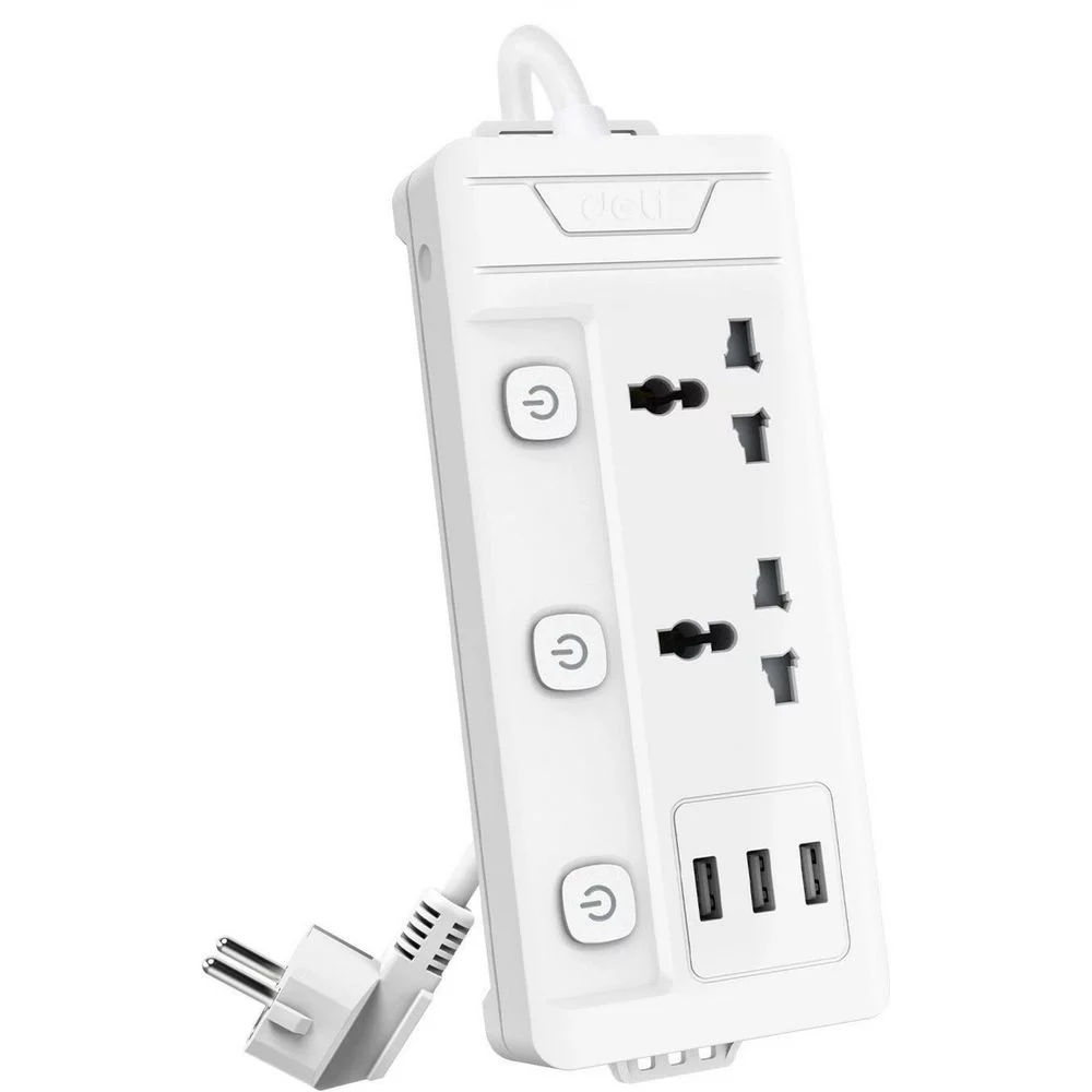 Сетевой фильтр Deli ET409 2м (2 розетки) белый (пакет ПЭ)