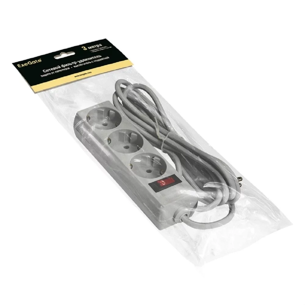 Exegate EX221180RUS Сетевой фильтр Exegate SP-3-3G (3 розетки, 3м, евровилка, серый)
