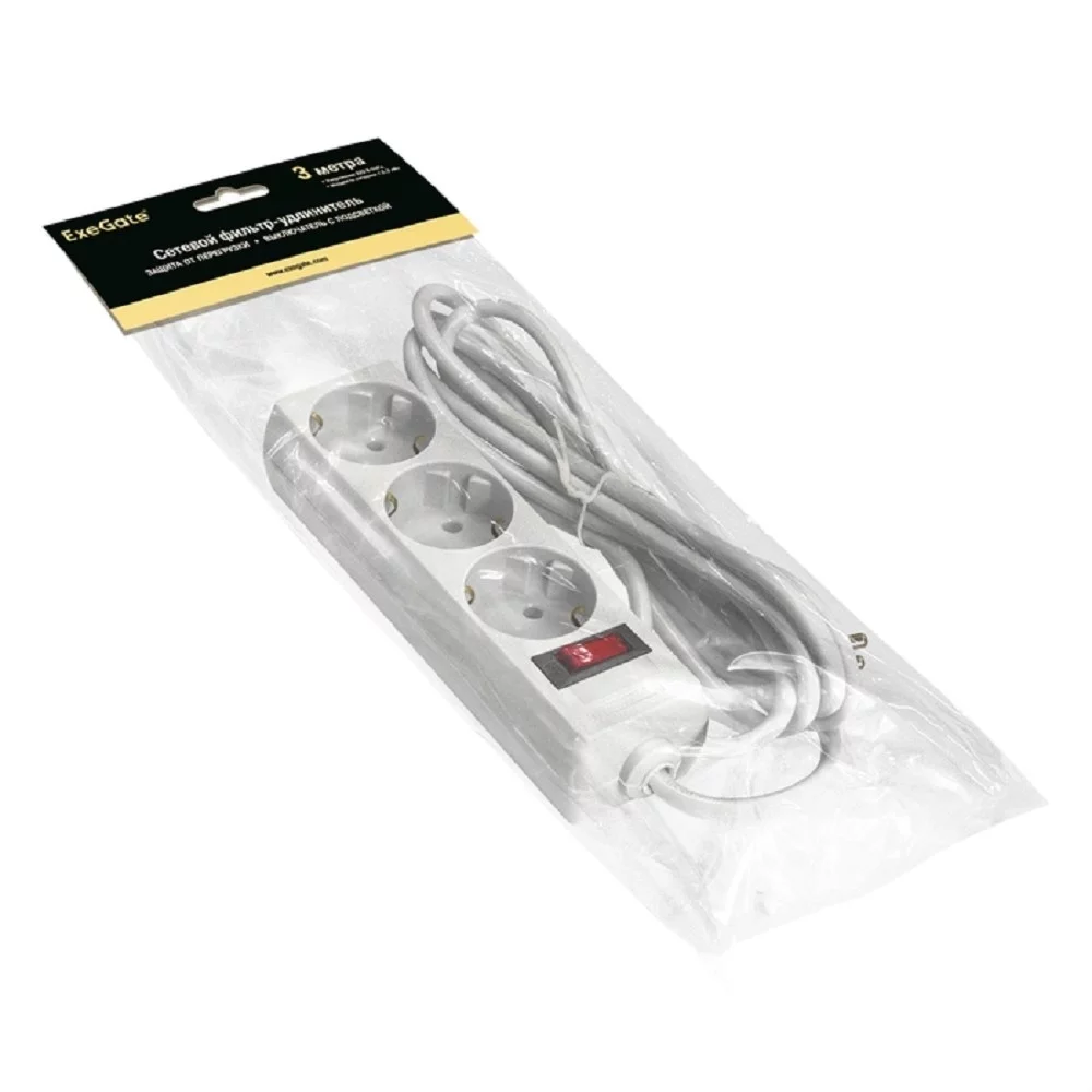 Exegate EX221181RUS Сетевой фильтр Exegate SP-3-3W (3 розетки, 3м, евровилка, белый)