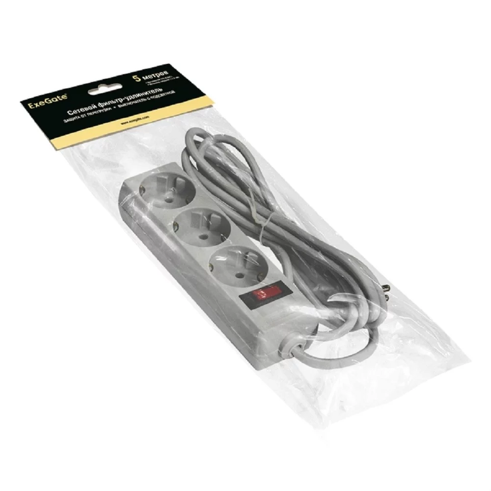 Exegate EX221183RUS Сетевой фильтр Exegate SP-3-5G (3 розетки, 5м, евровилка, серый)