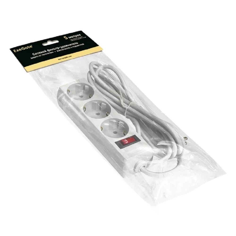 Exegate EX221184RUS Сетевой фильтр Exegate SP-3-5W (3 розетки, 5м, евровилка, белый)