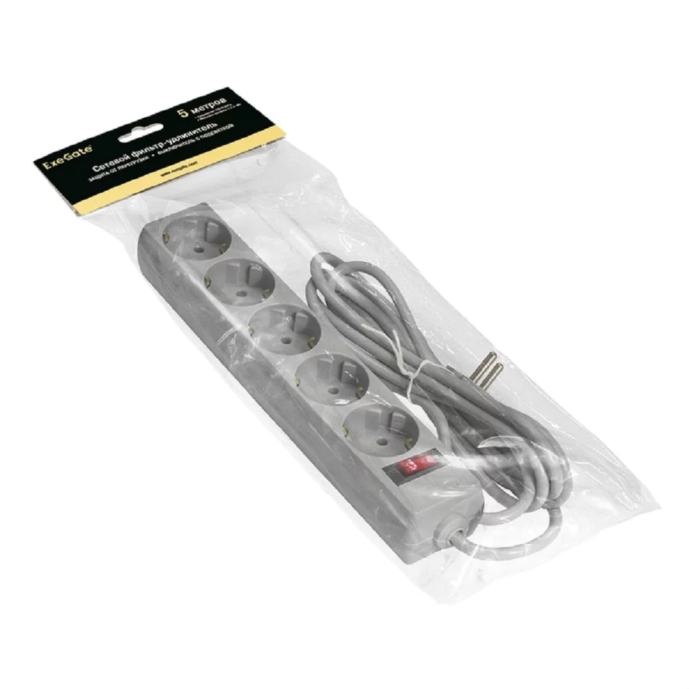 Exegate EX221189RUS Сетевой фильтр Exegate SP-5-5G (5 розеток, 5м, евровилка, серый)