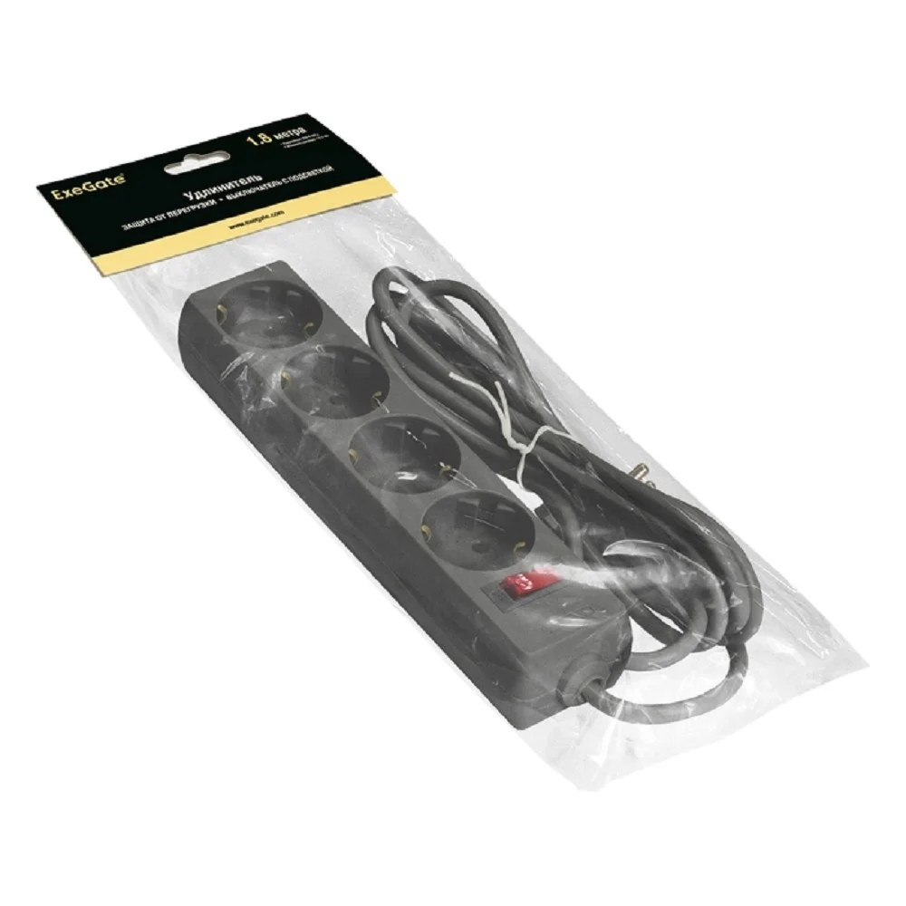 Exegate EX279396RUS Удлинитель ExeGate EC-4-1.8B (4 розетки, 1.8м, евровилка, черный)