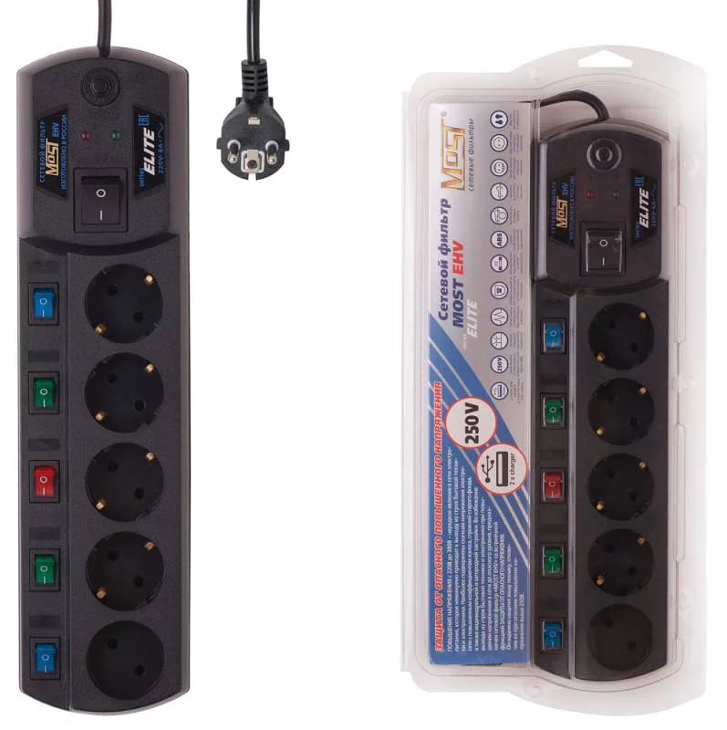 Сетевой фильтр Most EHV 5м (5 розеток) черный (коробка) (MOST EHV 5M ЧЕРН)