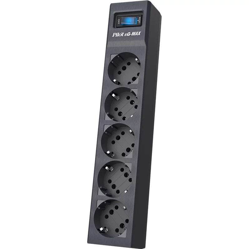 Сетевой фильтр Pilot SG 5 розеток (GP с заземлением), 15А/3.3кВа, автомат, 7 м, графит/ Surge protector Pilot sG-Max 5 outlets (GP), 15А/3.3 kVt, automatic circuit-breaker, 7 m, gfaph (PILOT SG-MAX 7M)