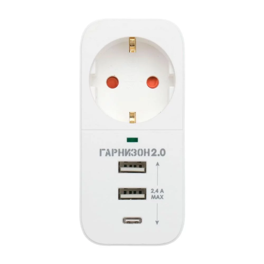 Гарнизон Сетевой фильтр SKT-1-CU2-W 2.0 Мультипорт однорозеточный, 1р, 16А, 1xType-C, 2 х USB, ур.защиты 2+, белый (21440)