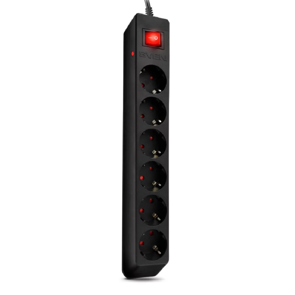 SVEN Фильтр Optima 1,8 м (6 розеток с защитными шторками) черный, цветная коробка (SV-021016)