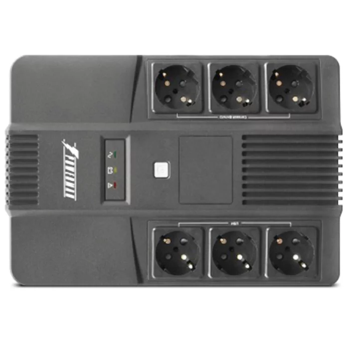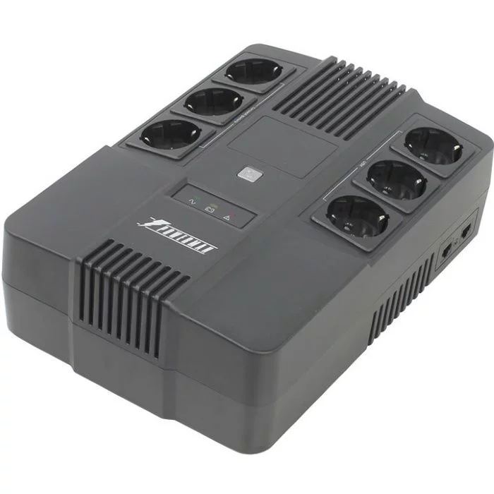 ИБП POWERMAN Brick 600, линейно-интерактивный, 600ВА, 360Вт, 3 евророзетки с резервным питанием, 3 евророзетки с фильтрацией, защита RJ45/RJ11, батарея 12В 7Ач 1 шт., 293мм х 202мм х 93мм, 4.5 кг./ UPS POWERMAN Brick 600, line-interactive, 600VA, 360W,