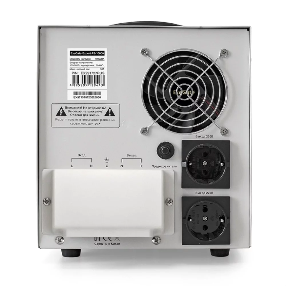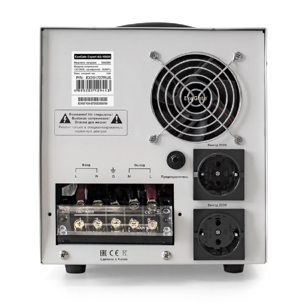 Exegate EX291727RUS Стабилизатор напряжения ExeGate Expert AS-10000 (10000ВА, вход 140...260В, цветной дисплей, выход 220В±8%, КПД 98%, 5 уровней защиты, задержка, усиленный метал. корпус, клем.колодк
