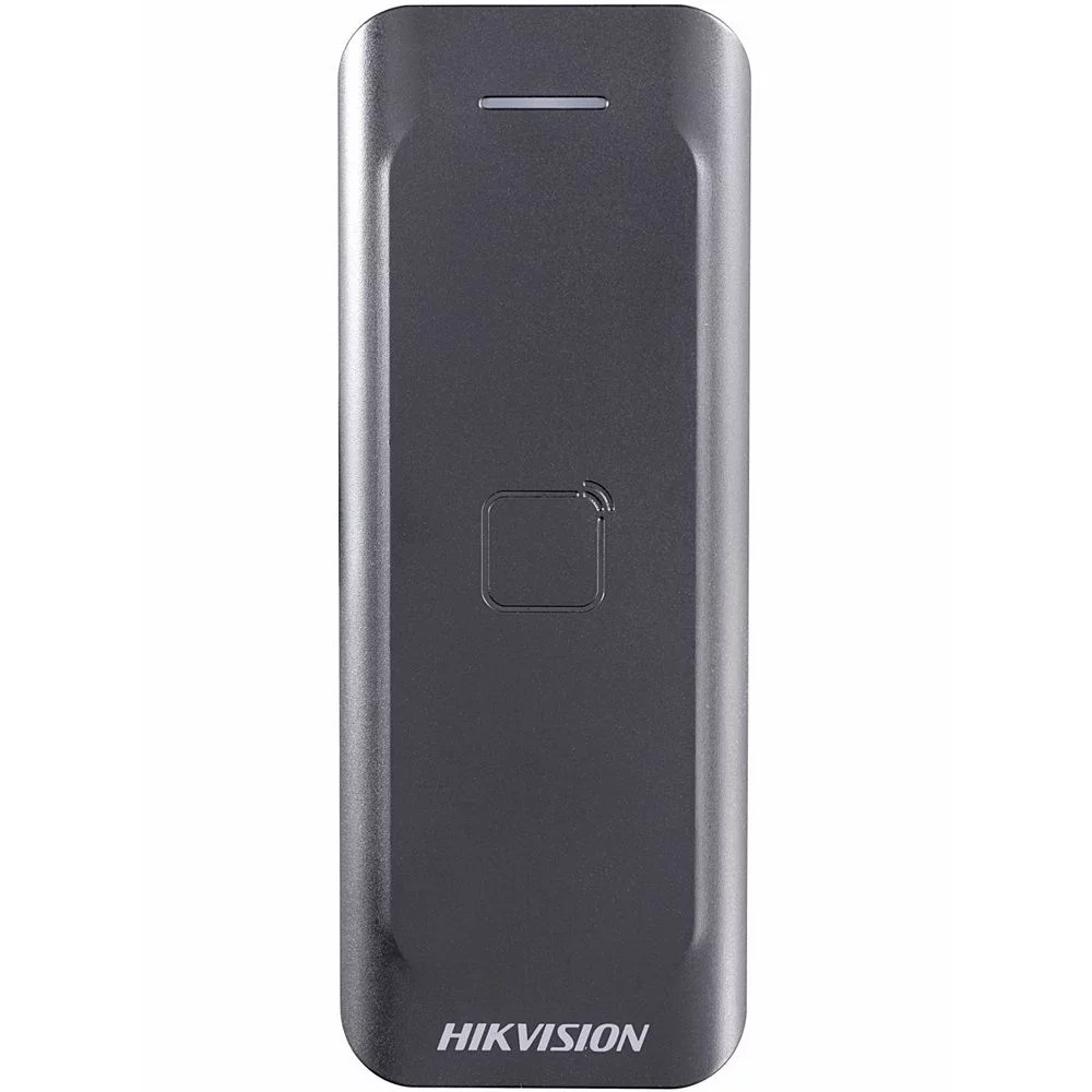 Считыватель Mifare карт, Частота 13.56МГц, дальность ≥50 мм, поддержка протокола Wiegand (W26/ W34), DC12В, 2Вт, -40...+70°C, IP65, пластик (DS-K1802M)