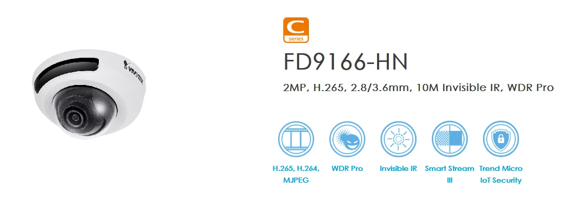 Камера IP куполная миниатюрная, 2M 30fps, H.265, f2.8mm fixed lens, 3 Axis with 940IR 10M, WDR Pro, 3DNR, PoE, One way audio, Built-in micro (FD9166-HN(2.8MM))