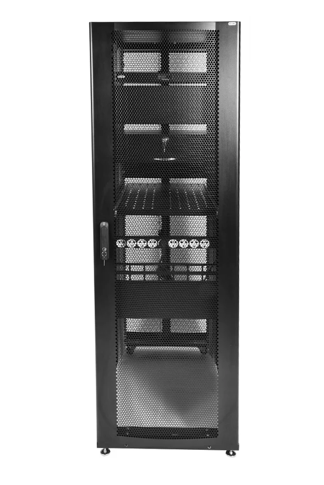 Шкаф серверный ПРОФ напольный 48U (800 × 1000) дверь перф. 2 шт., черный, в сборе (ШТК-СП-48.8.10-44АА-9005)