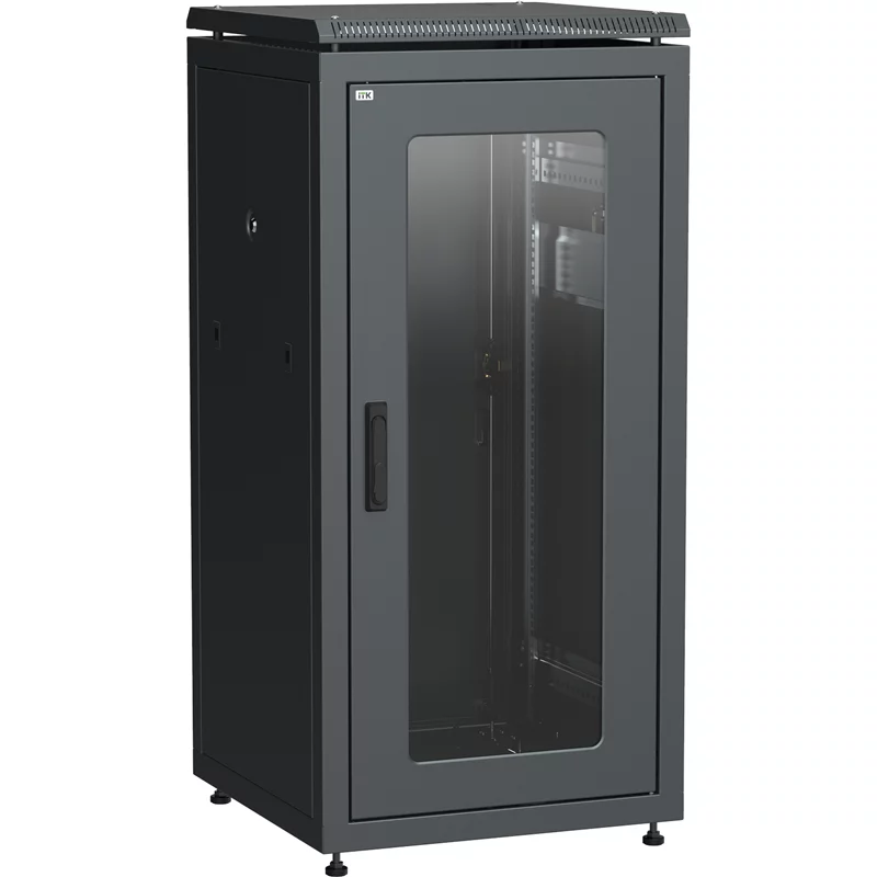 ITK Шкаф сетевой 19" LINEA N 24U 600х800 мм стеклянная передняя дверь, задняя металлическая черный (LN05-24U68-GM)